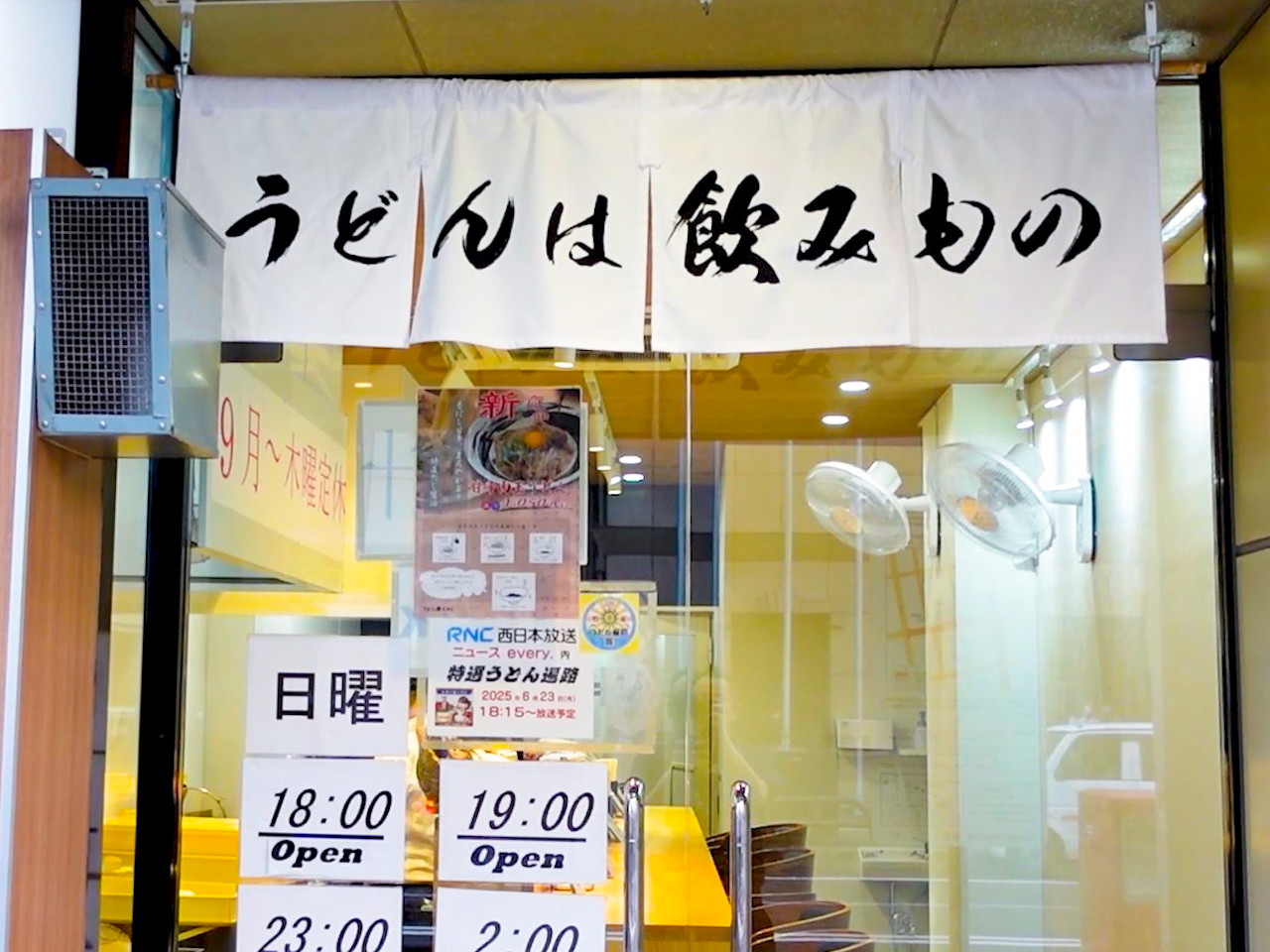 オープンは夜19時。夜が更けるほどに活気づく街で、深夜まで営業しているのが大きな特徴です。飲んだあとの「もう一口だけ麺をすすりたい」、県外からの出張や観光で遅い時間になりがちな方にも、特におすすめの讃岐うどん店です。